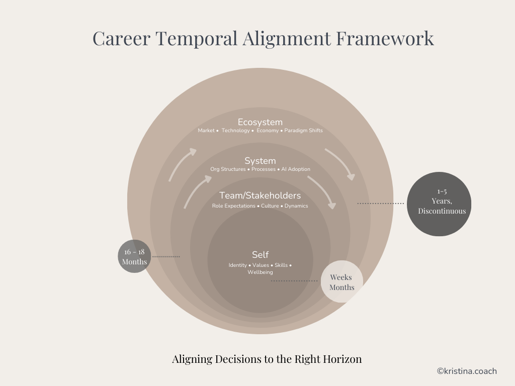 In a VUCA + AI-driven world, misalignment is structural, not personal. Your career uncertainty often comes not from a lack of skill or clarity, but from temporal gaps between layers of influence: